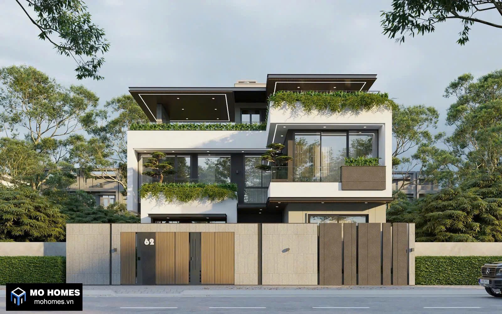 Biệt thự 3 tầng mái bằng hiện đại