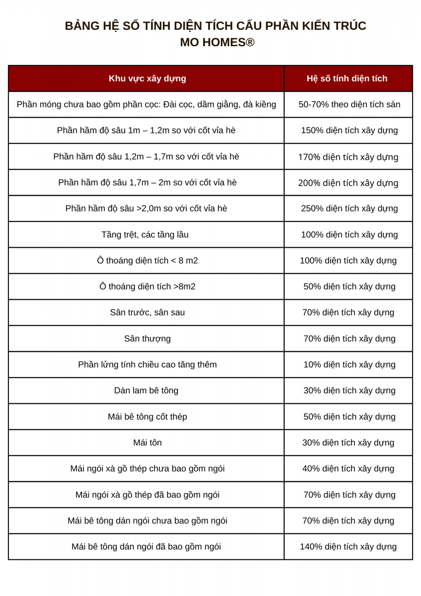 Mỗi công trình có đặc thù riêng (loại móng, mái, phong cách thiết kế...), hệ số có thể thay đổi.