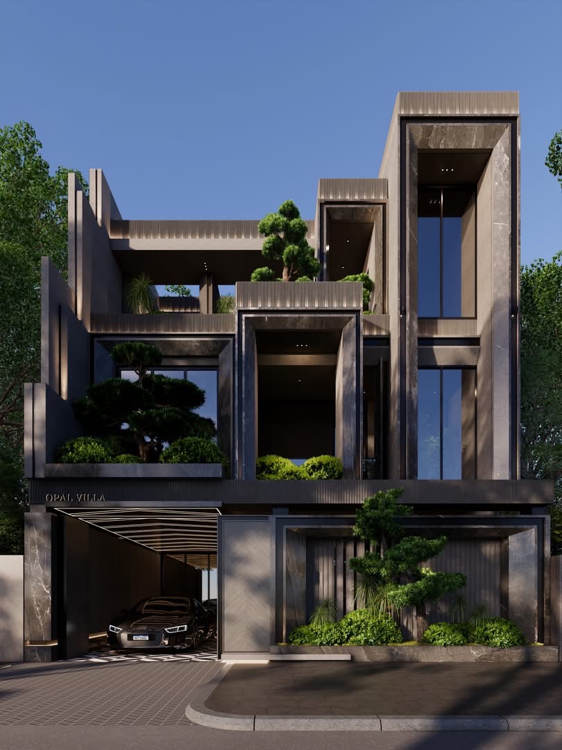 Mẫu nhà nổi bật với kiến trúc hiện đại, bố cục mở và nhiều mảng xanh bao quanh. Thiết kế sử dụng hệ cửa kính lớn giúp không gian luôn sáng thoáng, tăng khả năng kết nối giữa trong nhà và thiên nhiên bên ngoài. Nội thất theo phong cách hiện đại, tinh giản, phòng khách được thiết kế thông tầng tạo cảm giác rộng rãi và sang trọng.
