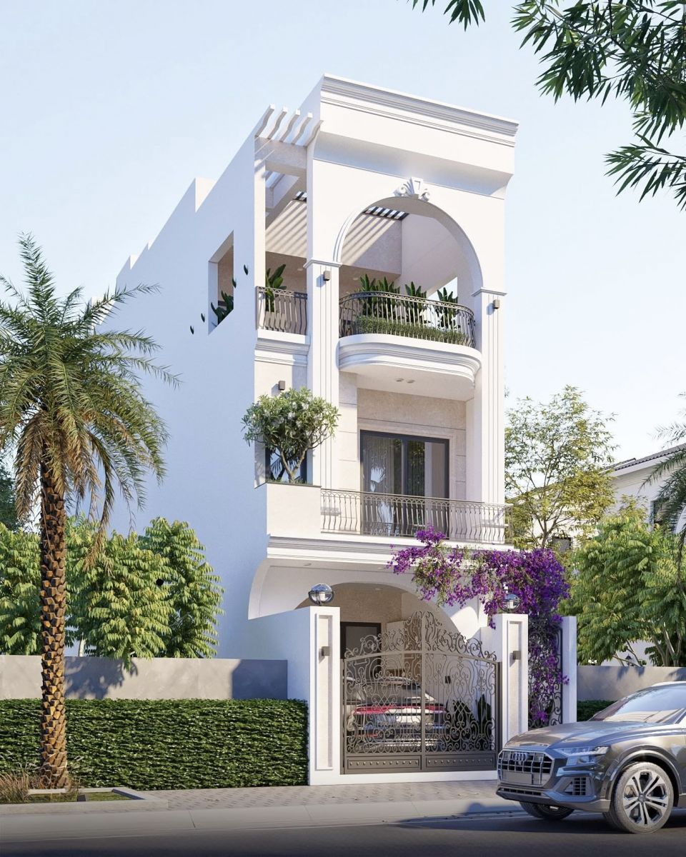 Sự kết hợp hài hòa giữa kiến trúc hiện đại và nét cổ điển tinh tế tạo nên vẻ đẹp sang trọng, bền vững theo thời gian. Mặt tiền được nhấn mạnh bằng các chi tiết phào chỉ nhẹ nhàng, hệ cửa vòm mềm mại mang đến tổng thể vừa đẳng cấp vừa ấm cúng.