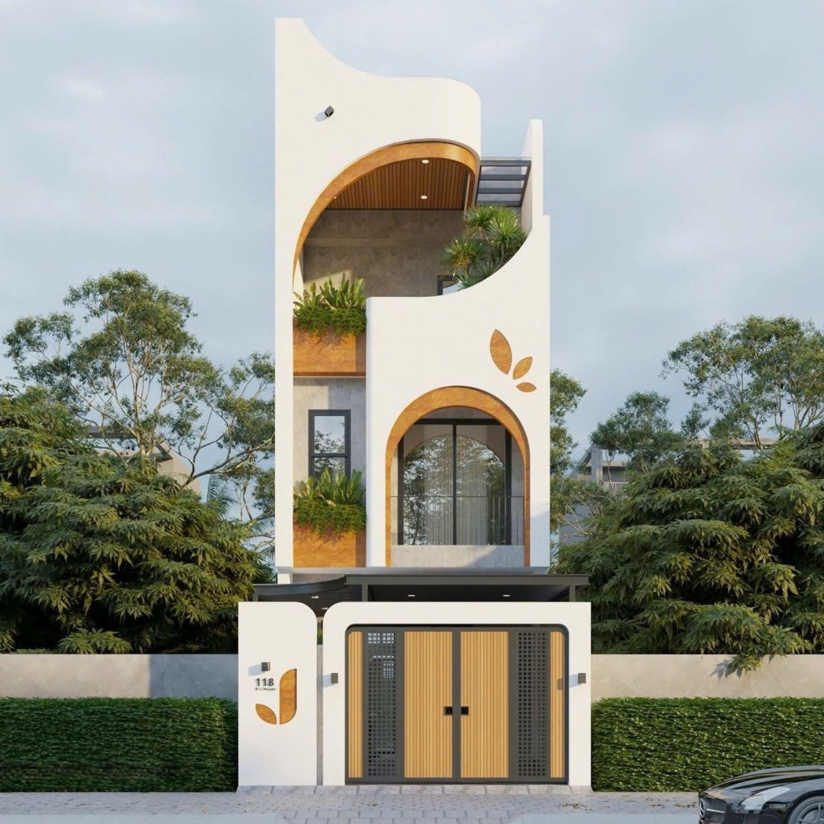3. Mẫu nhà ống 3 tầng 5×20 đẹp quyến rũ bởi những đường cong