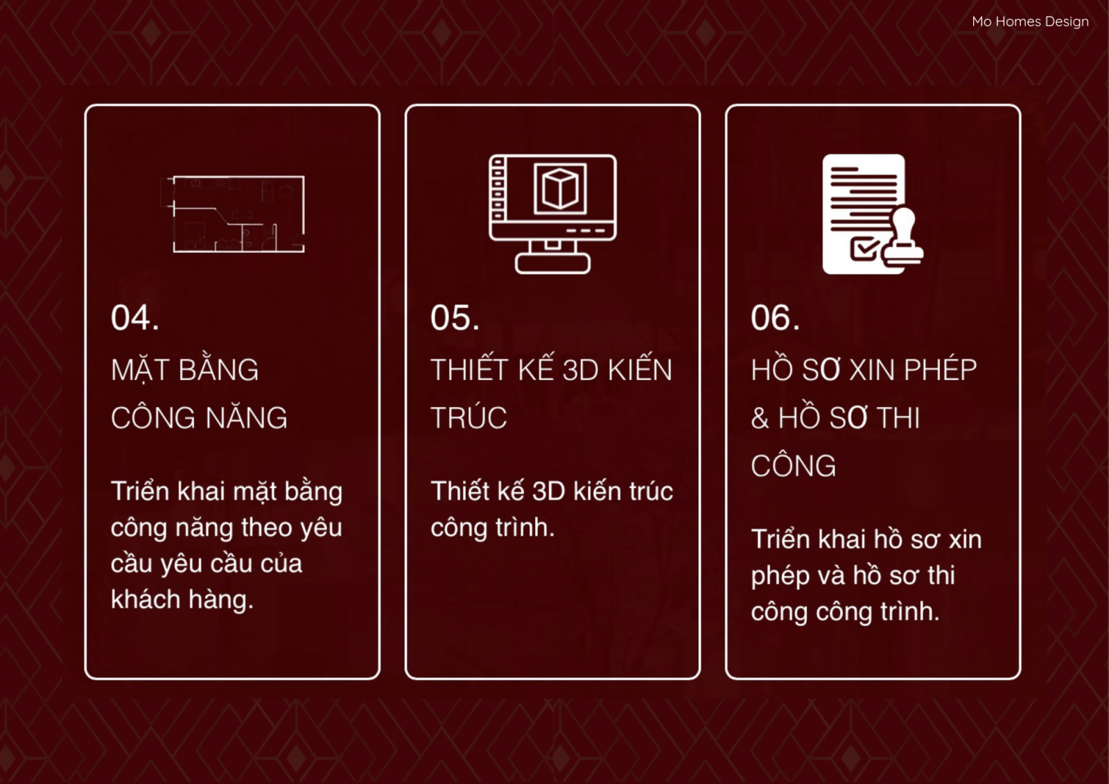 Mo Homes triển khai quy trình làm việc chuyên nghiệp – rõ ràng – khoa học, đảm bảo trải nghiệm minh bạch và hiệu quả cho khách hàng.