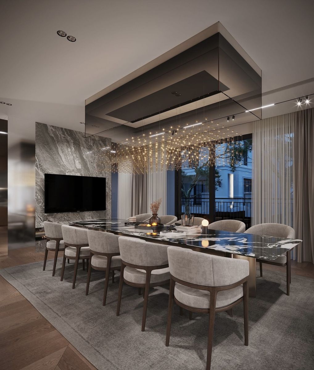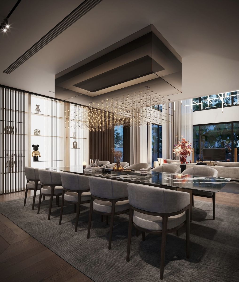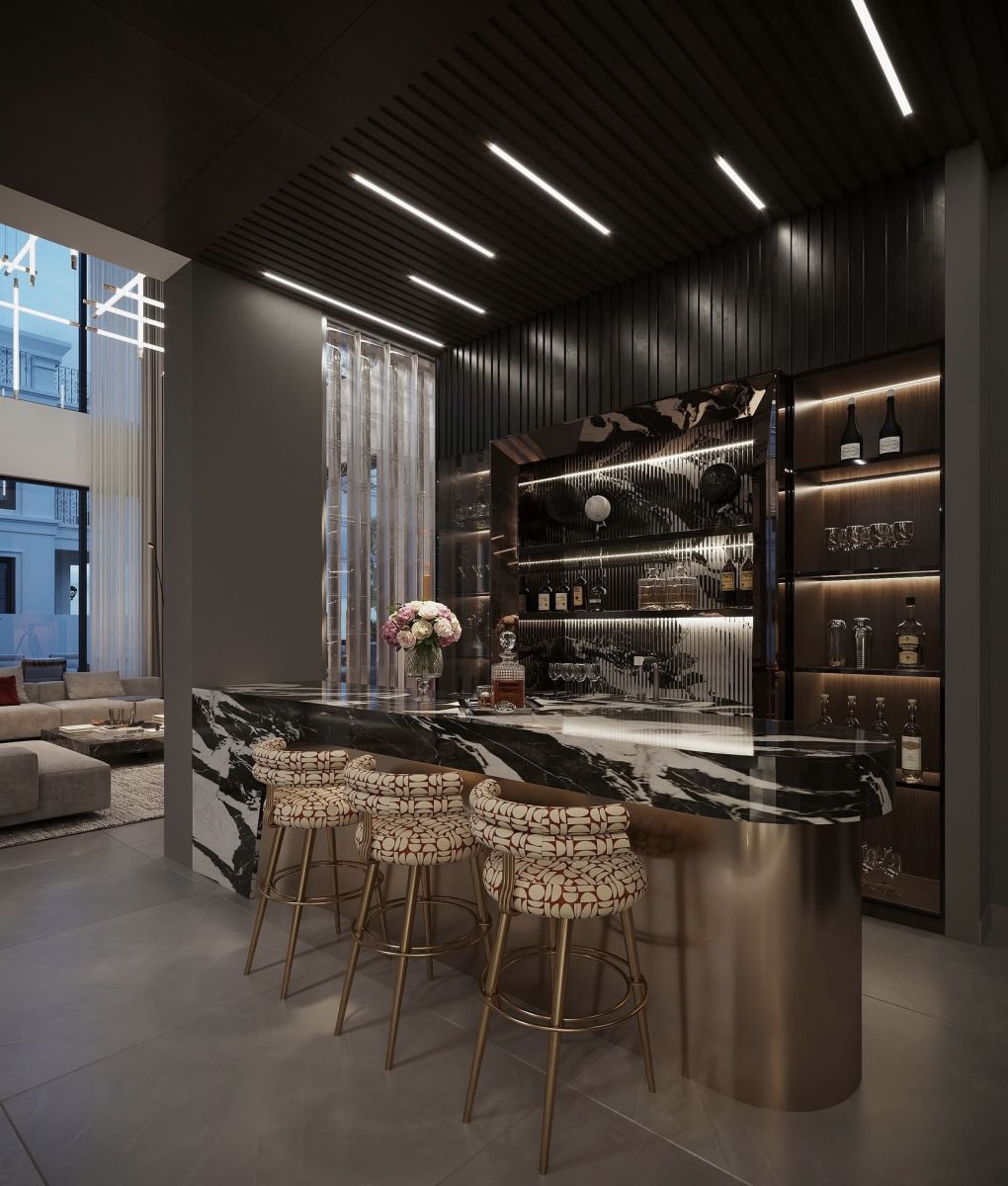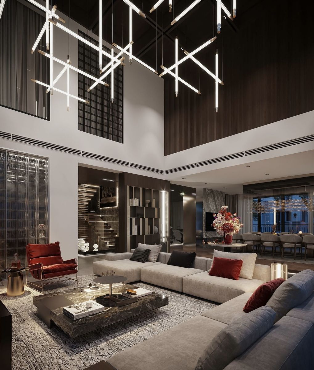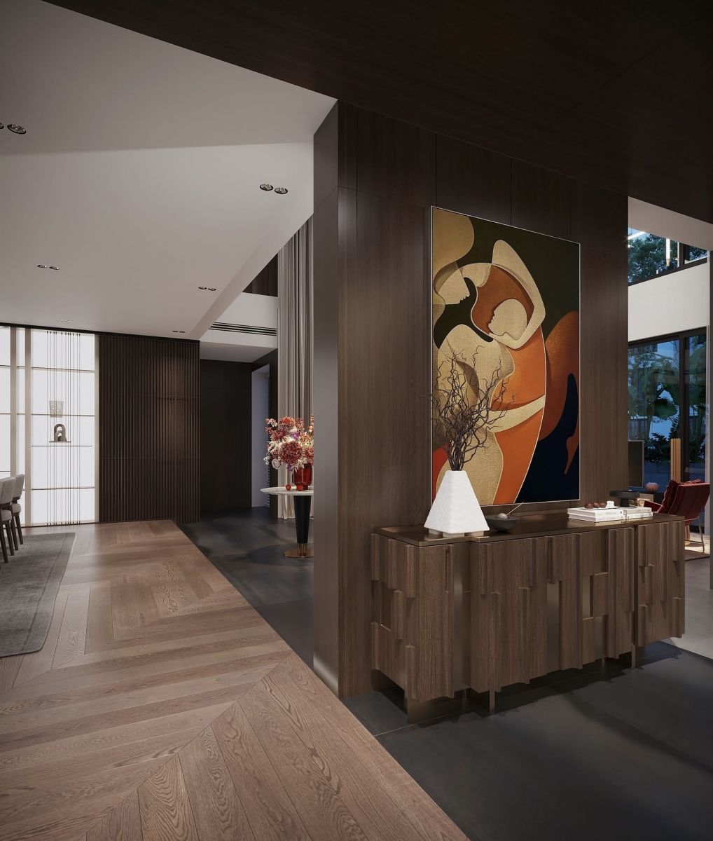 Một không gian sống được thiết kế hòa quyện sự sang trọng và ấm cúng. Gam màu trầm tạo nên một nền tảng vững chắc cho sự thanh lịch và hiện đại. Mỗi chi tiết trong căn hộ đều được chăm chút tỉ mỉ, từ các vật liệu cao cấp đến ánh sáng tinh tế, mang đến một cảm giác thoải mái và gợi mở cho người ở.
