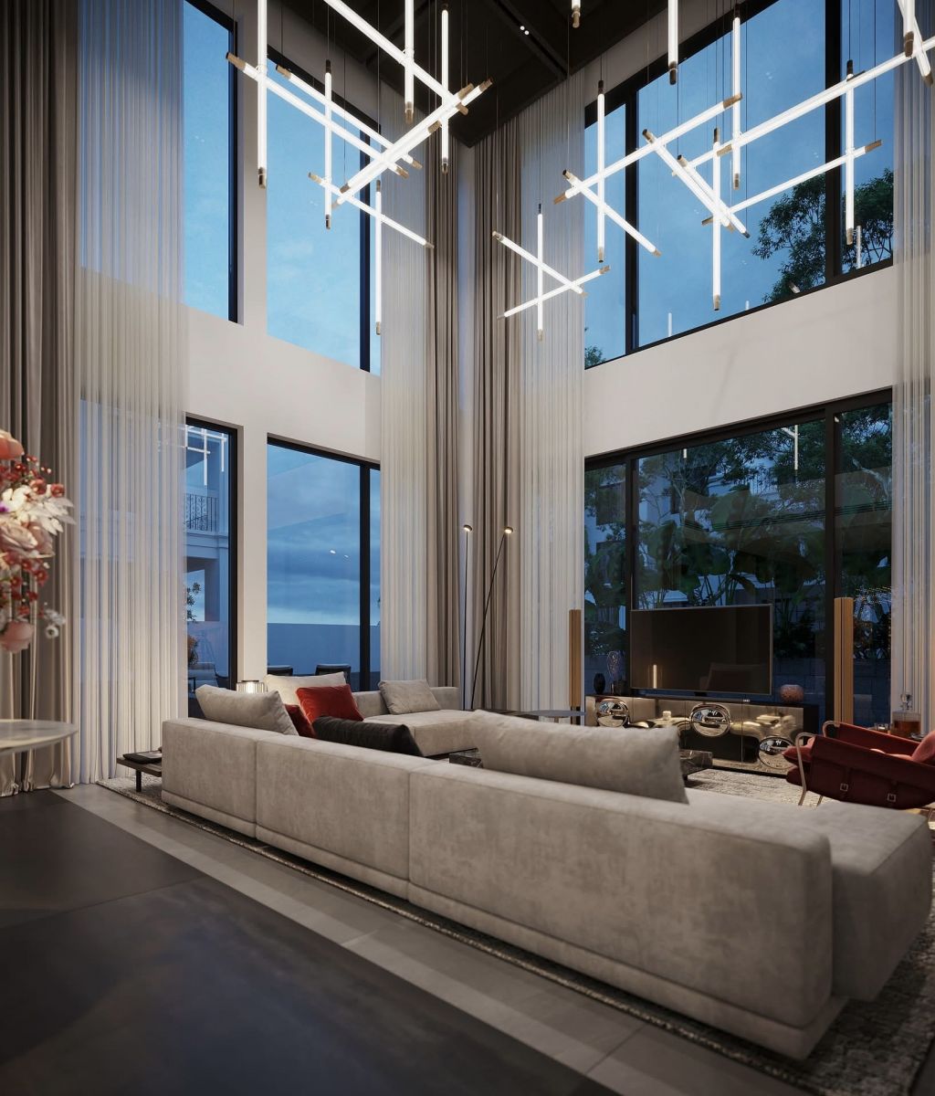 Cùng chiêm ngưỡng những hình ảnh căn hộ thông tầng và cảm nhận sự hòa quyện giữa vật liệu và ánh sáng trong không gian.